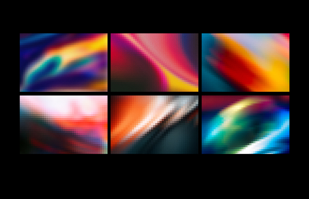 • 6 Unique JPEG Images: A diverse set of grainy, pixelated gradient backgrounds, each offering a distinct color scheme and visual appeal.